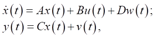 where A — state matrix; B — control matrix; u(t) — vector of control signals; D — matrix of disturbances; w(t) — vector of external disturbances; C — matrix of measurements; v(t) — vector of external disturbances.