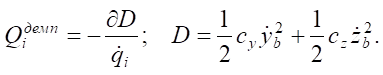 The generalized damping forces applied through the Rayleigh dissipation function to simulate linear damping are written as [15]: