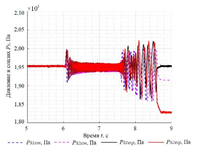 PS 1 sim, PS 2 sim —давление в сопловом аппарате 1 и 2, полученное в ходе математического моделирования, соответственно