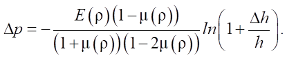 Since the axial compressive strain increases in absolute value during compacting under pressure p, the density of the medium and, consequently, its elastic constants change. Accordingly, Young's modulus E and Poisson's ratio μ are functions of density ρ: E = E(ρ), μ = μ(ρ). We use the Hencky strain as a measure of deformation.