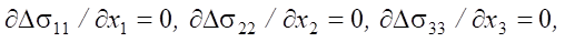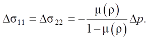 Based on differential equations (1) and condition (6), we arrive at the relations: Δσ11 = const; Δσ22 = const; Δσ33 = –Δp.