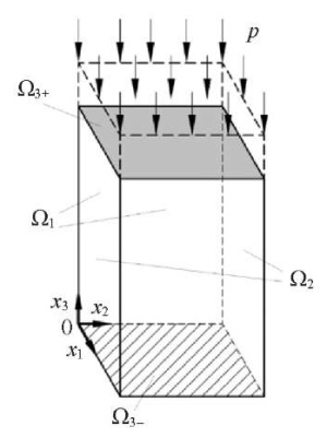 The geometric model of a particle conglomerate (Fig. 1) has the shape of a parallelepiped with height h and a constant square base with area S. Due to the rectangular shape of the particle conglomerate, the model is considered in a Cartesian coordinate system, where axis 0x3 is directed along the height of the parallelepiped, and axes 0x1 and 0x2 lie in the plane of the parallelepiped base.