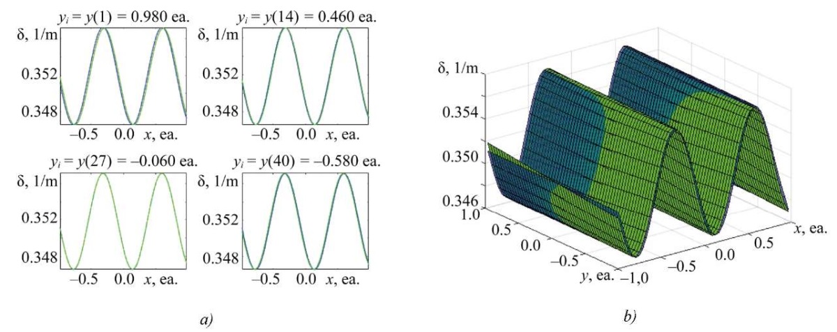 The distribution option selected for the example is due to the greatest impact of the 4th harmonic of the disturbance (inhomogeneity) on the splitting of the operating frequency of the HRG resonator [9].