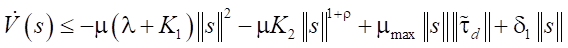 where V(0) is the initial Lyapunov value and Ts is the maximum setting time. Thus, s(t) → 0 in finite time.