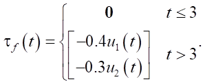 The actuator fault model assumes a loss of effectiveness that activates at time t = 3 seconds. The fault torque is defined as: