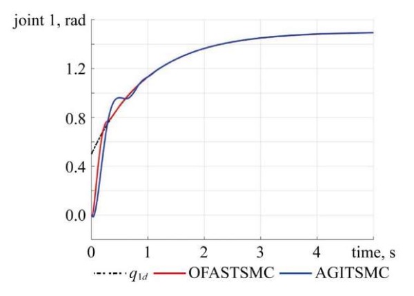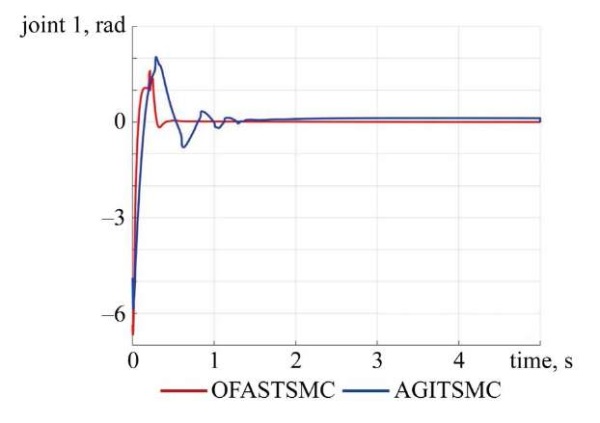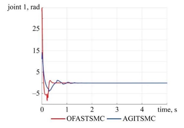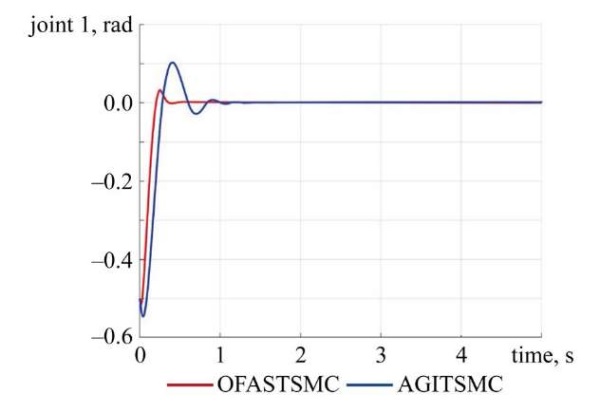 Conclusion. The results obtained confirm that OFASTSMC is an efficient and robust solution to the trajectory tracking problem in the presence of uncertainties. The method is computationally efficient and easy to implement in digital control systems, making it suitable for practical deployment in industrial robots, service manipulators, or surgical arms. Future research will focus on extending this method to task-space control and real hardware implementation under sensor noise and model mismatches.