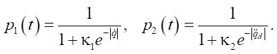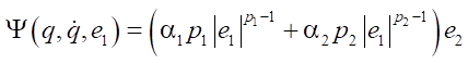 with adaptive exponents p1(t), p2(t) ∈ (0, 1) based on state magnitude: