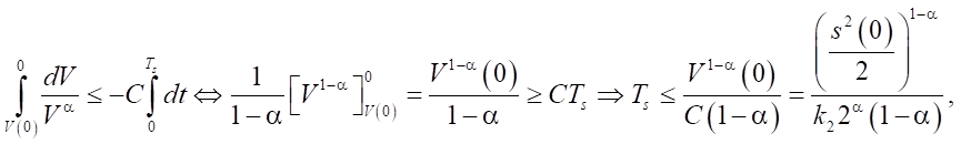 Then, by integrating the inequality using comparison theorems, we obtain a finite settling time T such that V(t) = 0 for all t ≥ T, where: