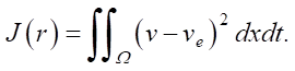 The quality criterion of model identification is specified as the deviation of the model state v from the experimentally observed ve in the real network over the entire spatiotemporal region Ω in the form of the following functional: