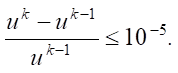 The condition for stopping iterations was the following criterion for the practical termination of convergence: