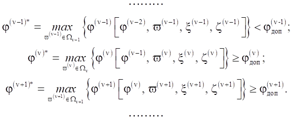 Single-level dependences that establish a relationship between performance indicators φ(ν), conditions ξ(ν) and selection parameters ϖ(ν) at each ν-th level: